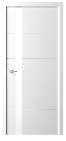 Дверь Геометрия-7 ширина 80 см Белый Эмаль Стекло белое кромка В цвет полотна в Пугачеве